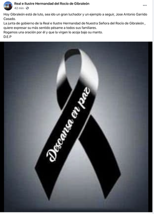Por su parte, la Real e Ilustre Hermandad del Rocío de Gibraleón glosaban su dolor con un crespón negro en sentido de luto hacia "un gran luchador y ejemplo a seguir".