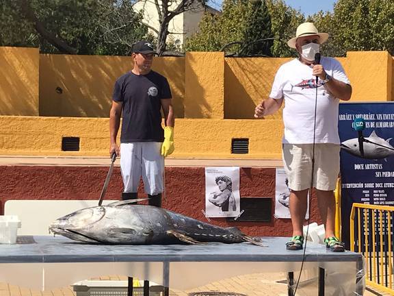 El 'ronqueo' o despiece tradicional de un atún de 106 kilos en directo en el Auditorio del Parque Central de Isla Cristina abría pasado el mediodía de hoy el Arráez Sotarraéz XIX Encuentro de Capitanes de Almadraba, que, tras el parón de pasado año a causa de la Pandemia del COVID-19, convertirá hasta el próximo domingo, 19 de septiembre al municipio costero en epicentro mundial de la pesquería de esta especie.