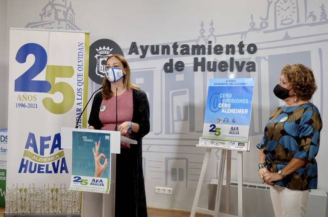 La concejala de Participación Ciudadana y Deportes, responsable del Área de Salud en el Ayuntamiento de Huelva, María Teresa Flores, ha respaldado a Rocío Muñoz, presidenta de la Asociación de Familiares de Personas con Alzheimer y otras demencias de Huelva y Provincia, AFA Huelva, en la presentación de los actos del Día Mundial del Alzheimer que se conmemora el próximo 21 de septiembre, coincidiendo este año con las celebraciones del 25 aniversario de la asociación en la ciudad.