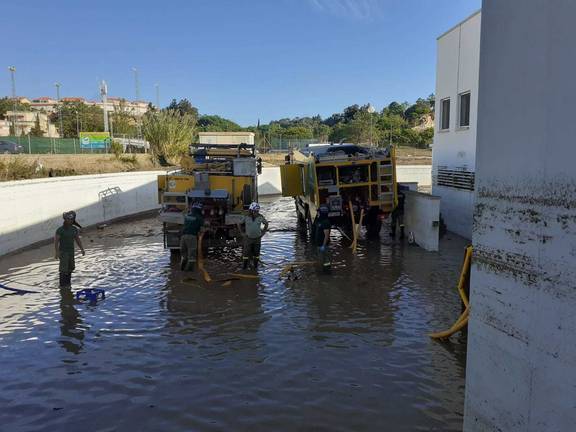 Las unidad de Plan INFOCA se encuentra desde el jueves, que llegó la gran riada para destrozar todo a su paso, trabajando sin cesar en diversas instalaciones de Lepe, La Antilla, Isla Cristina y Cartaya.