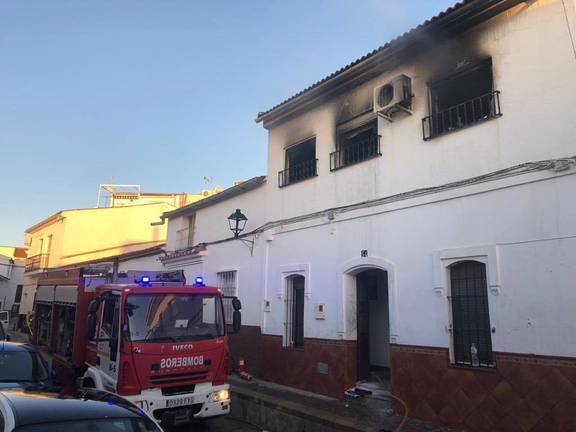 Varios vecinos alertaron al Teléfono 112 pasadas las tres de la madrugada de un incendio en una casa de la calle Manuel Motero que afectaba a todo el inmueble.