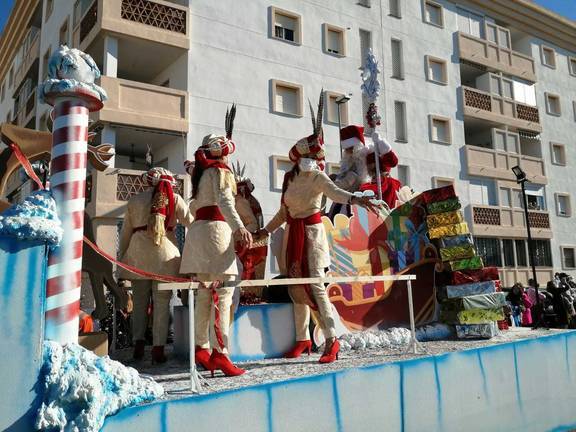 La cabalgata de Reyes de El Portil, organizada por la Asociación de Vecinos Portileños, ha salido en sus carrozas hoy a las 12 de la mañana de Reyes. Lanzando a quienes salieron a recibirlos regalos para todos los gustos y edades.