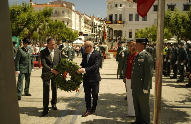 De este modo, se ha procedido a la entrega de condecoraciones al Mérito de la Guardia Civil a diferentes agentes del Cuerpo y homenaje a los caídos, estando presidido por la Subdelegada del Gobierno de la provincia de Huelva, Manuela Parralo, acompañada por el Coronel Jefe de la Comandancia de la Guardia Civil de Huelva, Andrés López García y el Alcalde de Aracena, Manuel Guerra González, junto con otras Autoridades, coincidiendo todos en que estos reconocimientos hacen públicos las actuaciones relevantes, no sólo de las personas pertenecientes al Cuerpo, sino también a aquellas que sin pertenecer a la Benemérita, contribuyen a reforzar su imagen institucional.