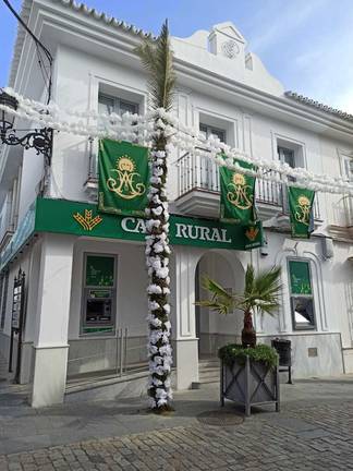 Caja Rural del Sur en Almonte se engalana ante la procesión extraordinaria de la Virgen del Rocío