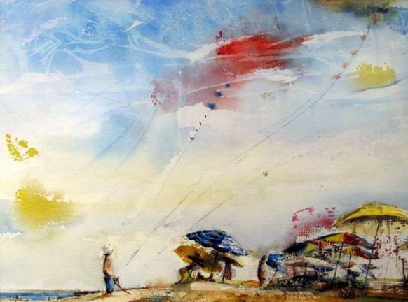 “La libertad en lento movimiento como la naturaleza. Todo se desenvuelve en silencios apenas rotos por el sonido del viento sobre las aguas marismeñas y el crujir musical de las agujas de los pinos al caer sobre la alfombra extendida por las arenas amarillas formando una concha natural entre marrón y verde. Cielo azul, cielo celeste, cielo difuminado por el atardecer sobre un horizonte sin fin apenas inquietado por el vuelo de cientos de gaviotas mágicas en sus volar elegante y aerodinámico. Y dunas, y mar , y casas como elementos reales y quizás algún ser humano como simple estampa, atrapado e inmóvil ante la quietud y el silencio de la obra de una impresionante artista onubense. Su nombre es Caridad Orta Zayas".