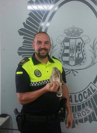 Sus compañeros de la Jefatura de Policía Local de Trigueros colaboran en esta tarea y ya han hecho entrega al CREA de un águila calzada herida, cernícalos, lechuzas, cárabos, mochuelos y hasta un ejemplar juvenil desorientado de buitre leonado, entre otras muchas distintas especies como erizos o reptiles.