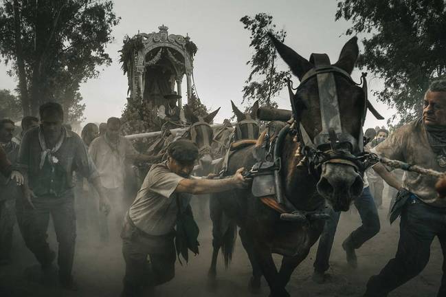"Cuando yo empiezo a mediados de los años 90 a hacer fotos de la Romería de El Rocío ya llevaba varios años viviendo fuera de Huelva (este año se han cumplido 30 desde que me fui a estudiar Periodismo a Salamanca). Aquel reportaje fue, no sólo una forma de ahondar en el mundo de la fotografía sino también una forma de volver a casa, a Huelva. Y, claro, El Rocío también es un tema accesible y barato, que no requiere de grandes preparativos, ni de una producción importante con el que un joven reportero puede empezar a ganar tablas en el oficio", comparte el periodista.