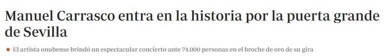 Los medios de comunicación encumbran al isleño Manuel Carrasco tras su histórico concierto en Sevilla. Como si hubiese ganado la Champions.