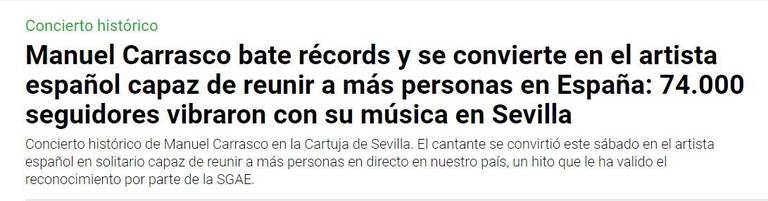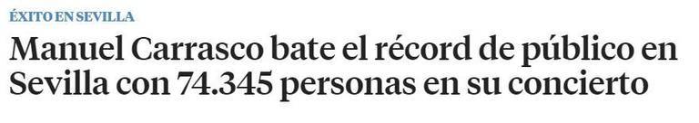 También RTVE se ha hecho eco de lo que pasó en Sevilla y en su web resume así la noche más triunfal, hasta el momento, de la música en España: "Manuel Carrasco quería dar a su público en Sevilla un concierto para el recuerdo y lo consiguió. La magia de un espectáculo único y de una voz que encendió los corazones de los más de 74.000 espectadores que llenaron el Estadio Olímpico. Un récord sin precedentes en una ciudad con la que el onubense siente una conexión especial".