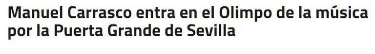 Tremendo el pirobo de Murube, que titula con tintes taurinos un poco heredados por su apellido: "Manuel Carrasco entra en la historia por la Puerta Grande de Sevilla".