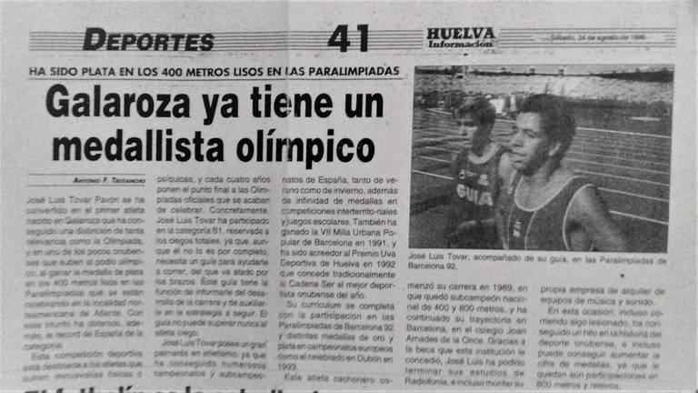 No todas las pequeñas localidades españolas pueden presumir de tener un hijo medallista olímpico. Galaroza sí que tiene el honor de contar con un cachonero que alcanzó esta gesta. Se trata de José Luis Tovar Pavón, que ganó la medalla de plata en la prueba de 400 metros en las Paraolimpiadas que se celebraron en Atlanta en 1996.