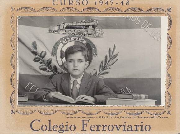 Recomendado, colocado y adicto eran tres categorías de los afortunados, y por recomendación mi padre pudo inscribirme en el Colegio Ferroviario, porque era complicado encontrar escuelas. Allí, pasados unos cursos, don Francisco Vizcaíno pidió hablar con mi padre, con alarma en casa, temiendo petición de dinero o algo peor. Mi padre fue informado de que el Gobierno, en una política docente opuesta a la republicana, que había proyectado miles de escuelas para todos, prefería mejor atender a algunos alumnos seleccionados, y anunciaba la creación de unas becas de estudio que exigirían al escolar obtener siempre una nota mínima de 7. Se había decidido que yo representara a ese colegio en unos exámenes provinciales. Mi padre me tenía ya destinado a entrar de aprendiz en los talleres de la Río Tinto. Era además un socialista infiltrado y apreciado que aceptó ser nombrado enlace sindical, condiciones casi pavorosas si su hijo era secuestrado por el sistema. Me había visto ya llorar ante un obligado ejercicio de redacción donde los niños debíamos contar cómo era nuestro padre, sus amigos, si iba a misa, si vivía con nosotros algún invitado, si leía… y yo había oído sus preocupados comentarios a mi madre.