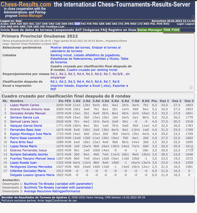 El periodista Carlos López volvió a coronarse como Campeón Provincial Absoluto de ajedrez después de la octava ronda del torneo que se celebró en la Fundación Valdocco de Huelva.