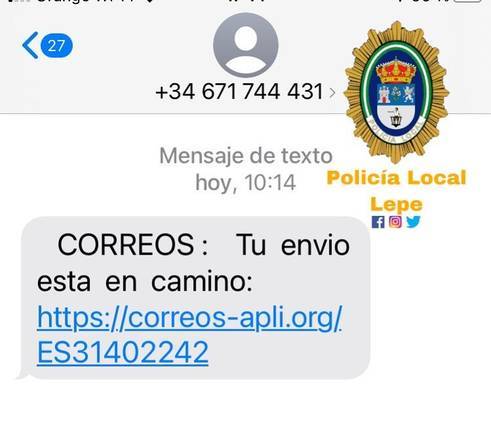 La Policía Local de Lepe ha alertado de un fraudulento mensaje de 'Correos' que está llegando a la población.