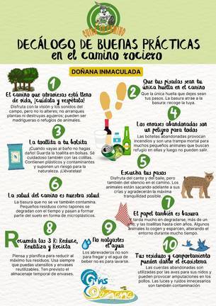 Para el presidente de la asociación Guías de Doñana, “es la primera vez que tenemos la oportunidad de compartir camino tras el difícil periodo pandémico, y debemos hacerlo asumiendo un compromiso con nuestro medio natural; por eso pedimos a los rocieros que mantengan limpios los caminos, prescindan de plásticos, faciliten el trabajo a los equipos de recogida de los residuos y consideren los consejos de nuestro Decálogo”.