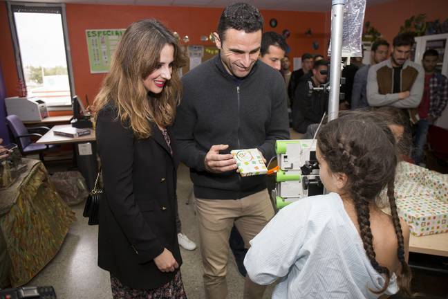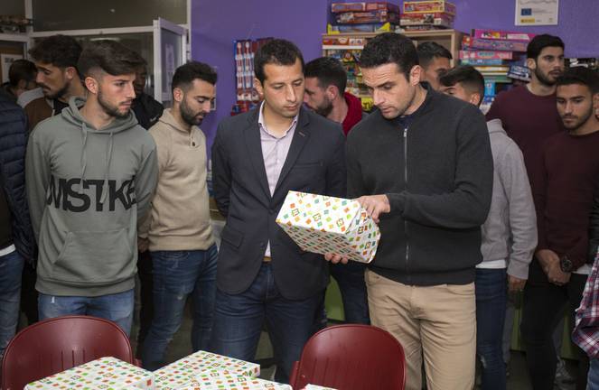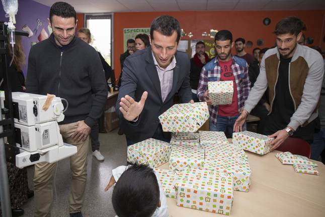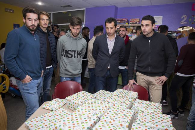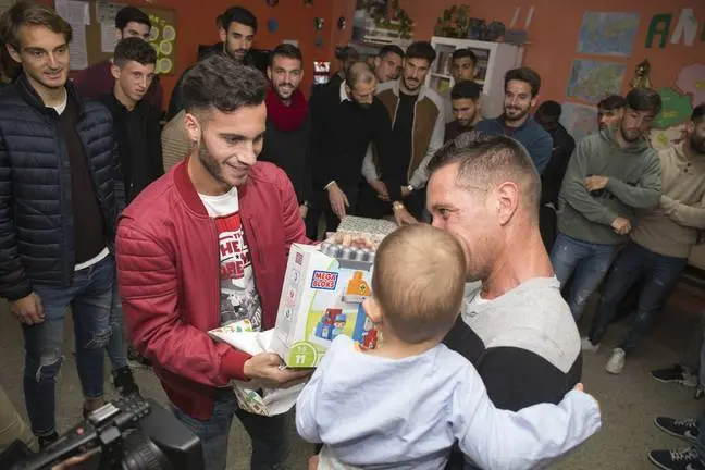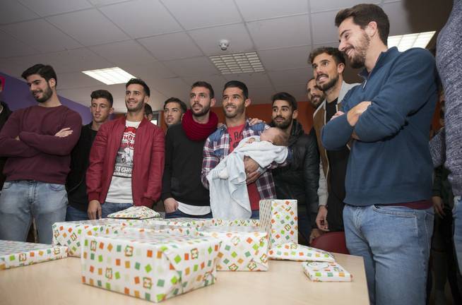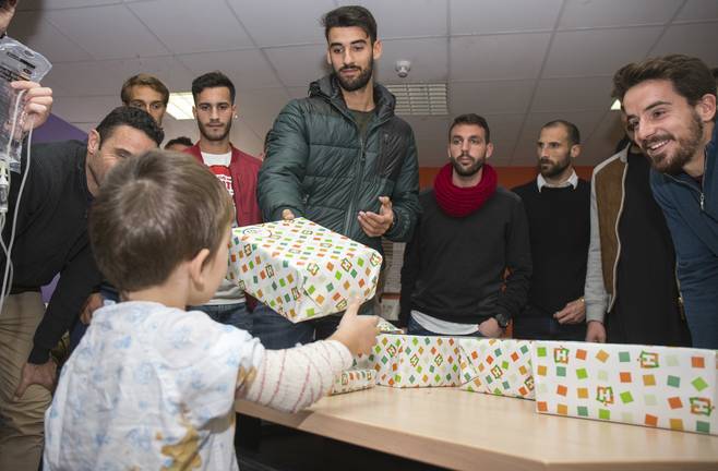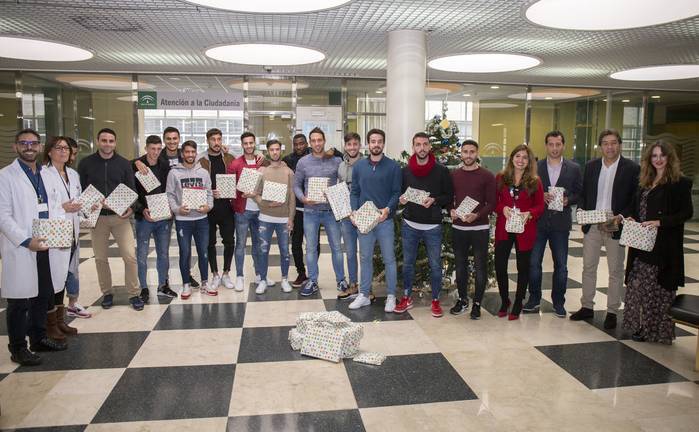 El presidente del Real Club Recreativo de Huelva, Manuel Zambrano, y la directora del Centro Comercial Holea, Amelia Romero, acompañados del cuerpo técnico, una representación de la primera plantilla del club y de la Asociación de Futbolistas Solidarios, han realizado una entrega de juguetes a los niños ingresados en el Área de Pediatría del Hospital Juan Ramón Jiménez de Huelva, mientras que el resto de la plantilla ha asistido a otra entrega de juguetes a la Ciudad de los Niños.