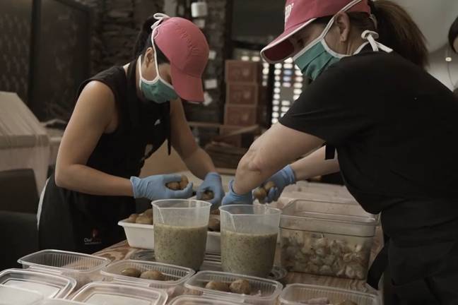 Siempre hay una persona esperando como diciendo, "¿Dónde me pongo?" y pueden ser cocineros que se pongan a envasar o pueden ser personas que no hayan cocinado en su vida y se pongan a pelar patatas y cebolla para 800 personas. Se nota en los ojos la adrenalina, ese brillo especial que dice: "estoy haciendo algo grande. Estoy participando en un proyecto que ayuda a muchas personas".
