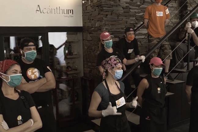 A través de un gesto altruista Xanty Elías y 180 voluntarios trabajan intensamente desde hace más de un mes para recordar a los peor parados de esta crisis mundial que "no están solos".