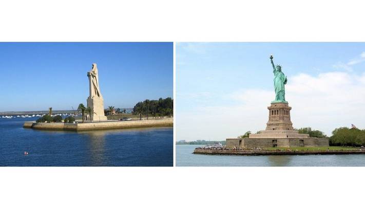 - La Estatua de la Libertad, símbolo de Nueva York, tiene su homóloga en Huelva con la estatua de la Fe Descubridora, mirando ambas hacia el océano Atlántico.