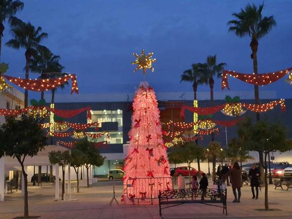 La Navidad luce diferente este año en La Palma del Condado. Desde el Ayuntamiento siempre habían querido tener un gran árbol de la Navidad en la Plaza de España. El pasado 2019 pusieron el primero pero, aseguran desde el consistorio, "era demasiado caro y lo consideramos un gasto excesivo".
