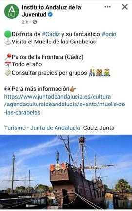 El Instituto Andaluz de la Juventud ha ubicado esta tarde el Muelle de las Carabelas en la provincia de Cádiz para asombro de los usuarios de Twitter.