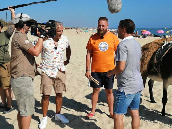 Un equipo del programa 'A toda costa' que emite Canal Sur televisión todos los miércoles a partir de las 22,30 horas y que presenta Antonio Montero, se ha desplazado a El Portil para la grabación de un programa dedicado a dicha localidad y al que hemos encontrado cuando entrevistaban al ex jugador del Recreativo Dimitri Rosu.