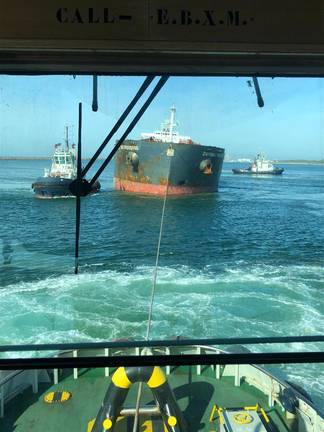 Un mercante cargado de grano se salió del canal y quedó embarrancado por lo que intervinieron inmediatamente desde la Autoridad Portuaria para solventar la situación.
