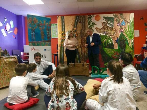 La diputada de Cultura, Lourdes Garrido y el delegado de Igualdad, Salud y Políticas Sociales, Rafael López, acompañados por el equipo directivo del centro sanitario, han asistido a esta actividad enmarcada en el 525 Aniversario del Encuentro entre dos Mundos, que se suma al programa de actividades que está realizando estos días el hospital para celebrar las fiestas navideñas junto a pacientes, familiares y profesionales. Además de asistir al cuentacuentos, a los niños participantes se les ha regalado un ejemplar del álbum, editado por la Diputación.