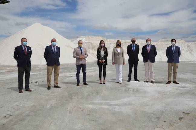 Bendodo ha visitado la empresa Salinas del Odiel, una de las principales productoras de sal de España. Esta sociedad cosecha entre 150.000 y 170.000 toneladas de sal al año y ha creado unos 90 puestos de trabajo directos y unos 300 indirectos.