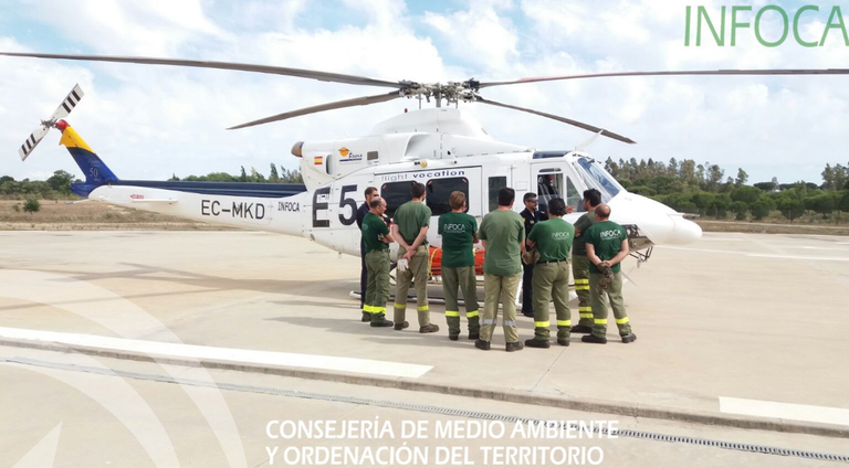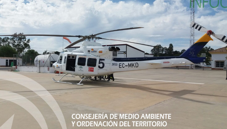 El Plan Infoca ha adelanta a hoy lunes su activación en la provincia de Huelva. A través de las redes sociales, el Infoca ha mostrado uno de los 'pájaros' con los que contará para controlar todo el área de Doñana y su entorno durante la multitudinaria romería. Se trata del helicóptero Eco 5, que ha sido posicionado en el Centro de Defensa Forestal (Cedefo) de Cabezudos, en el Espacio Natural Doñana. El Plan Infoca aporta además 5 aeronaves al Plan Romero 2017.