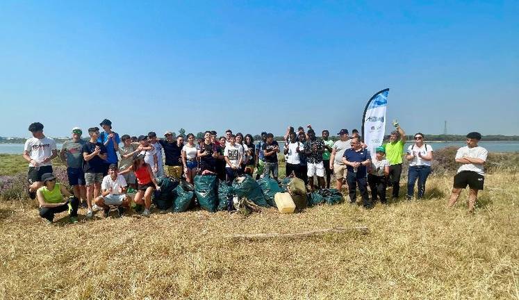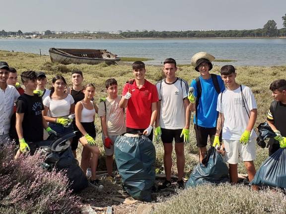 Aguas de Huelva ha organizado una jornada de limpieza de la Marisma Mareal del Odiel en la que ha participado el CDP Virgen de Belén de Huelva capital y la empresa Onubaland.