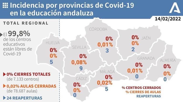 La mejora de la tasa de incidencia acumulada posibilita la relajación de medidas. Los casos bajan también en centros escolares. En Huelva no hay clases cerradas.