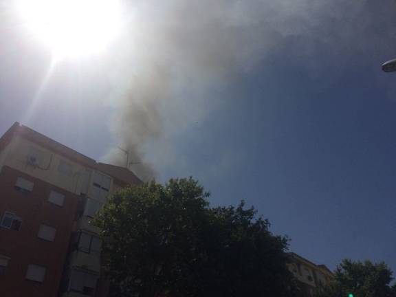 El patio interior del edificio número 24 en la calle Gonzalo de Berceo, en La Orden, ha sufrido un incendio esta mañana como consecuencia de una colilla. El fuego y el humo han afectado a las habitaciones de la primera y segunda planta colindantes con el patio de luz, sin que se hayan producido heridos, salvo una mujer que ha sufrido un ataque de ansiedad.