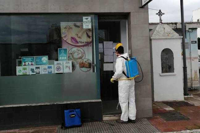 "En esta fase 1 de la desescalada continuamos desinfectando los interiores y exteriores de los comercios, establecimientos públicos y pequeñas empresas de San Juan del Puerto. Todo sea por minimizar los posibles riesgos de contagio del Covid-19", han recogido desde el consistorio.