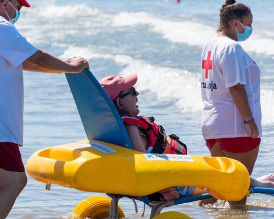 Algo que parece tan sencillo como pasear por la arena o darse un baño en el mar es muy complicado, incluso imposible, para muchas personas, por eso Cruz Roja creó hace 22 años el programa ‘Un baño sin barreras’, que de nuevo ha vuelto a la playa en los meses de julio y agosto, por segundo año adaptado, además, a las exigencias de seguridad y protección derivadas de la crisis sanitaria de la COVID19.