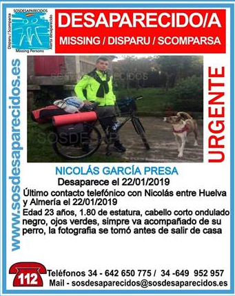 SOS Desaparecidos ha realizado un llamamiento para encontrar a Nicolás García Presa, de 23 años que lleva en paradero desconocido desde el pasado 22 de enero.