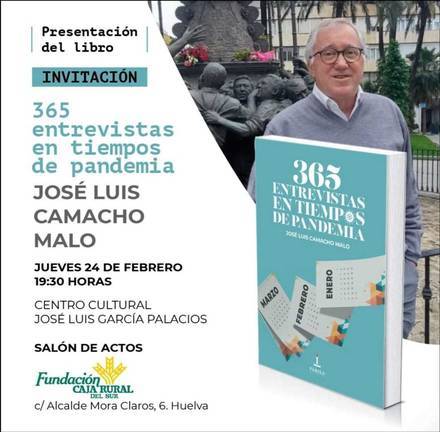 José Luis Camacho Malo presenta este jueves 24 en el salón de actos de la Caja Rural de la calle Botica su libro '365 entrevistas en tiempos de pandemia'. Una obra que reúne las primeras 365 entrevistas consecutivas que recogió en su popular espacio Made In Huelva de diariodehuelva.es durante los convulsos primeros tiempos de la pandemia que nos barre desde marzo de 2020. Pero el reto sigue y sigue, día a día, en las páginas cibernéticas de diariodehuelva.es.