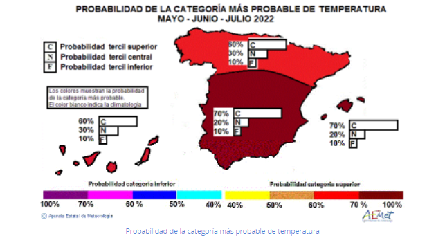 AEMET anuncia que las previsiones para este verano serán de auténtico calor, por lo que toda lluvia que aún se prolongue en el mes de mayo, será de gran ayuda para afrontar otro periodo estival que se espera nuevamente de altas temperaturas y una cada vez más preocupante sequía.