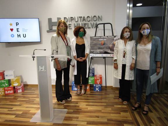 Debido a las restricciones impuestas por la pandemia de la COVID-19, Feafes-Huelva celebrará este año de forma virtual su tradicional Carrera por la Salud Mental. Así lo ha explicado la presidenta de la asociación, María Domínguez, en la presentación del evento, que se ha desarrollado esta mañana en Diputación con la presencia de la vicepresidenta de Territorio Inteligente, María Eugenia Limón; la concejal de Participación Ciudadana, Salud y Deporte del Ayuntamiento de Huelva, María Teresa Flores; la presidenta de la Autoridad Portuaria de Huelva, Pilar Miranda; y la técnica de Feafes-Huelva, Cristina Bolaños.