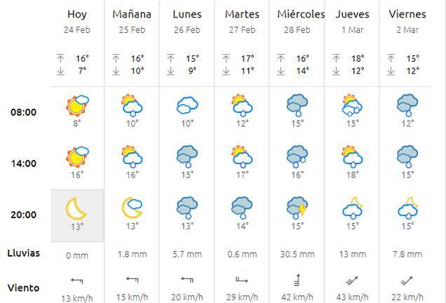 El día de mayor inestabilidad será el miércoles donde sí se prevén lluvias importantes prácticamente en toda la provincia.
