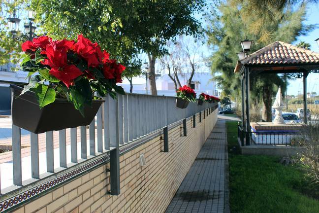 El Ayuntamiento de Cartaya ha colocado en las últimas semanas más de más de 350 ejemplares de Ponsettia, más conocida como flor de pascua o de Navidad, con el objetivo de adornar y seguir embelleciendo las entradas, calles, plazoletas y edificios municipales de cara a los días de Navidad.