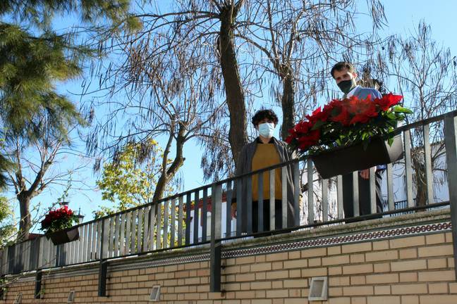 Cartaya da color a la Navidad con la colocación de más de 350 flores de pascua