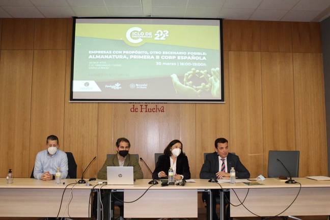 Tal y como ha detallado María Jesús Moreno, “una novedad muy interesante de este ciclo ha sido el poder dar a conocer qué son las Empresas con Propósito”, de la mano de Juanjo Manzano, director ejecutivo de AlmaNatura, primera B Corp española, con sede en Arroyomolinos de León (Huelva), localidad a donde se desplazaron un grupo de estudiantes de la UHU para conocer in situ la sede de esta empresa, radicada en un antiguo molino de aceite restaurado por la propia empresa. Allí disfrutaron de una jornada de convivencia y capacitación sobre innovación social y rural, conociendo proyectos ejecutados por este laboratorio de innovación de social y comprobando que el emprendimiento social es una realidad en la provincia de Huelva.