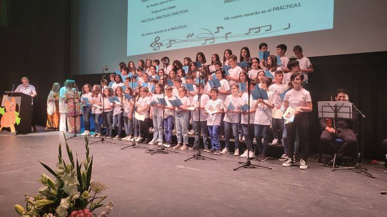 Después de una apertura musical de piano y violín, de la presentación de un vídeo conmemorativo y de los discursos, se ha dado paso a actuaciones del alumnado, con la interpretación de unas sevillanas por parte de una alumna de segundo de primaria y la actuación del coro del colegio que ha estrenado el nuevo himno del centro educativo, todos ellos acompañados por un conjunto instrumental.