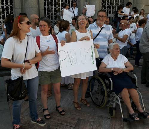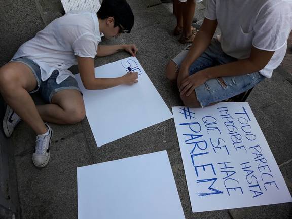 Cumpliendo con la premisa de la convocatoria, los manifestantes han acudido vestidos de blanco y sin banderas. Durante la protesta han escrito pancartas con lemas como '¡Parlem!' o 'Todo parece imposible hasta que se hace'. Y eso es lo que piden: que se haga posible, que haya diálogo.