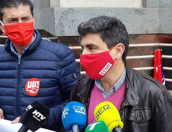 La concentración que ha tenido lugar en la Plaza de las Monjas ha congregado a unos 50 delegados y delegadas sindicales para garantizar la seguridad y respetar las medidas sanitarias.