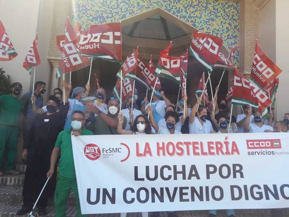 El 90 % de los trabajadoras y trabajadoras han secundado la jornada de concentración convocada en el día de hoy en establecimientos hoteleros de Isla Canela y Matalascañas como medida de protesta por el bloqueo del convenio del sector de la hostelería. Las medidas de movilizaciones han sido convocadas por las centrales sindicales debido a que las negociaciones con la patronal no han dado frutos y consideran ‘inasumibles’ las propuestas de los empresarios.