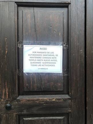 Igualmente, por mandato de las autoridades sanitarias, quedan suspendidas por el momento, todas las actividades religiosas, así como oficios y celebraciones en el interior de la iglesia.