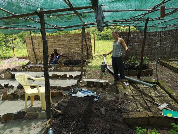 Por su parte, Isabel Caminal, la otra voluntaria de la Onubense, que lleva a cabo un estudio sobre las plantas medicinales en la comunidad rural de Dindefelo y colabora en el proyecto de desarrollo agroforestal sostenible en Nandoumari, corrobora que la decisión de confinamiento “ha sido tomada por la seguridad del equipo y con la finalidad de ser coherentes con la recomendación del gobierno de que nos quedemos en casa. En cualquier caso, aquí estamos bastante entretenidos con el mantenimiento del vivero y cocinando”.
