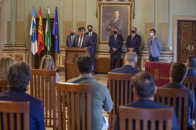 En esta línea han firmado los alcaldes de Huelva y Sevilla, Gabriel Cruz y Juan Espadas, respectivamente, el manifiesto acuñado por la Cámara Oficial de Comercio, Industria, Servicios y Navegación de Huelva, también refrendado por la Federación Onubense de Empresarios (FOE), la Confederación de Empresarios de Sevilla (CES); y la Cámara sevillana. Es por ello que este acto ha contado con el respaldo y la intervención del presidente de la FOE, José Luis García-Palacios Álvarez; el de la CES, Miguel Rus; el de la Cámara onubense, Daniel Toscano; y su homólogo hispalense, Francisco Herrero.